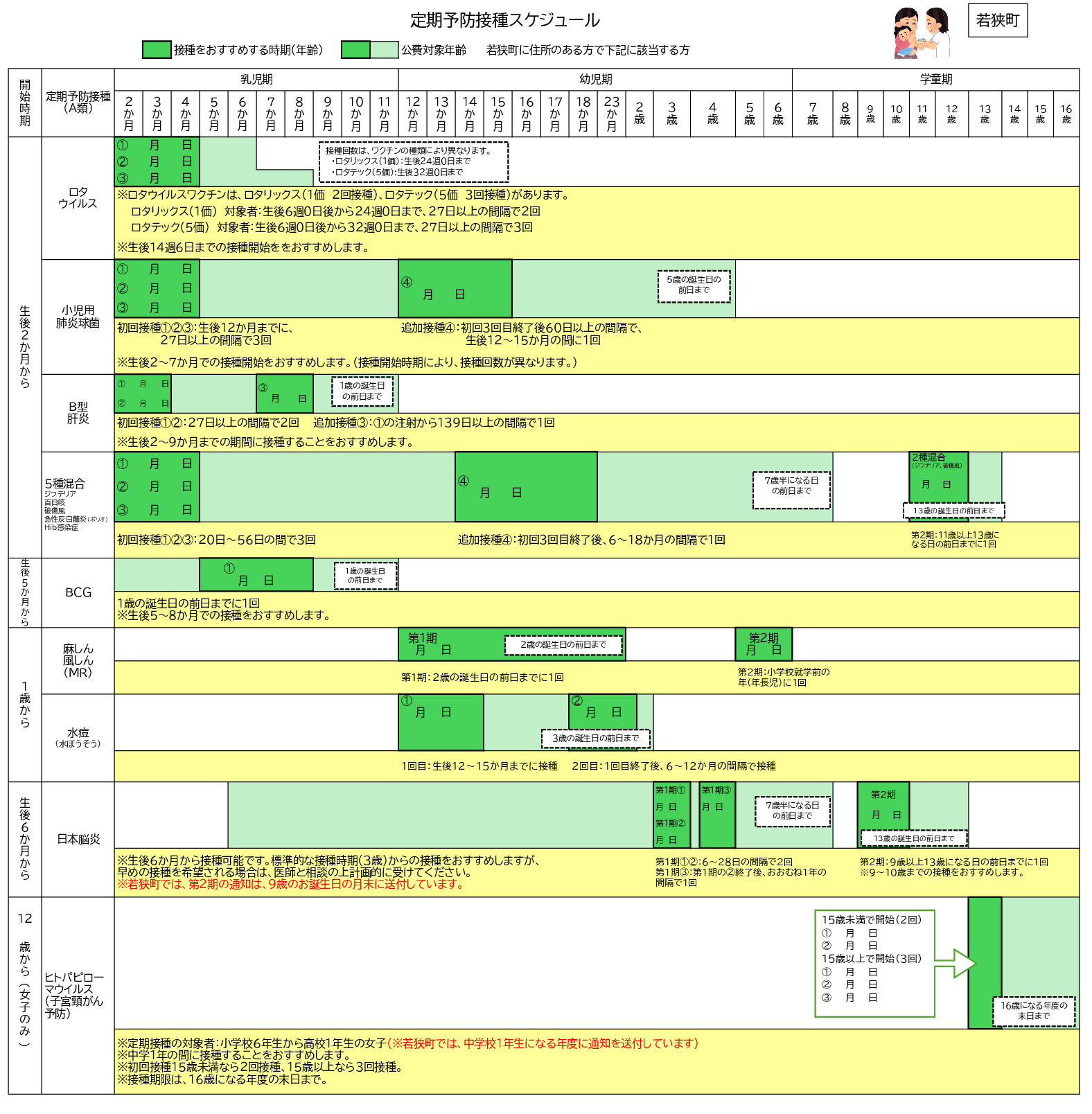 予防接種接種スケジュール