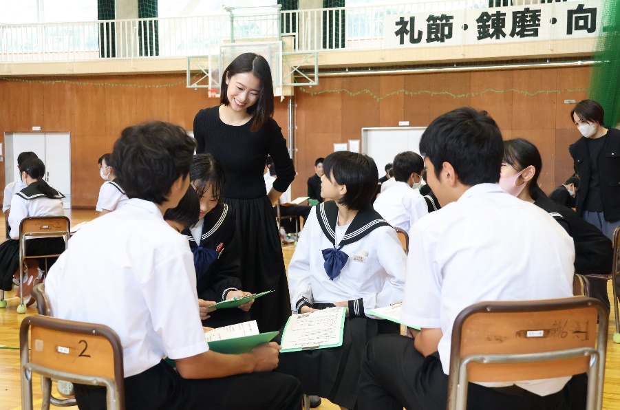 若狭町SDGsアンバサダー平原依文氏と美方高校の連携企画。美方高校オープンスクールの中で探究活動の成果を発表