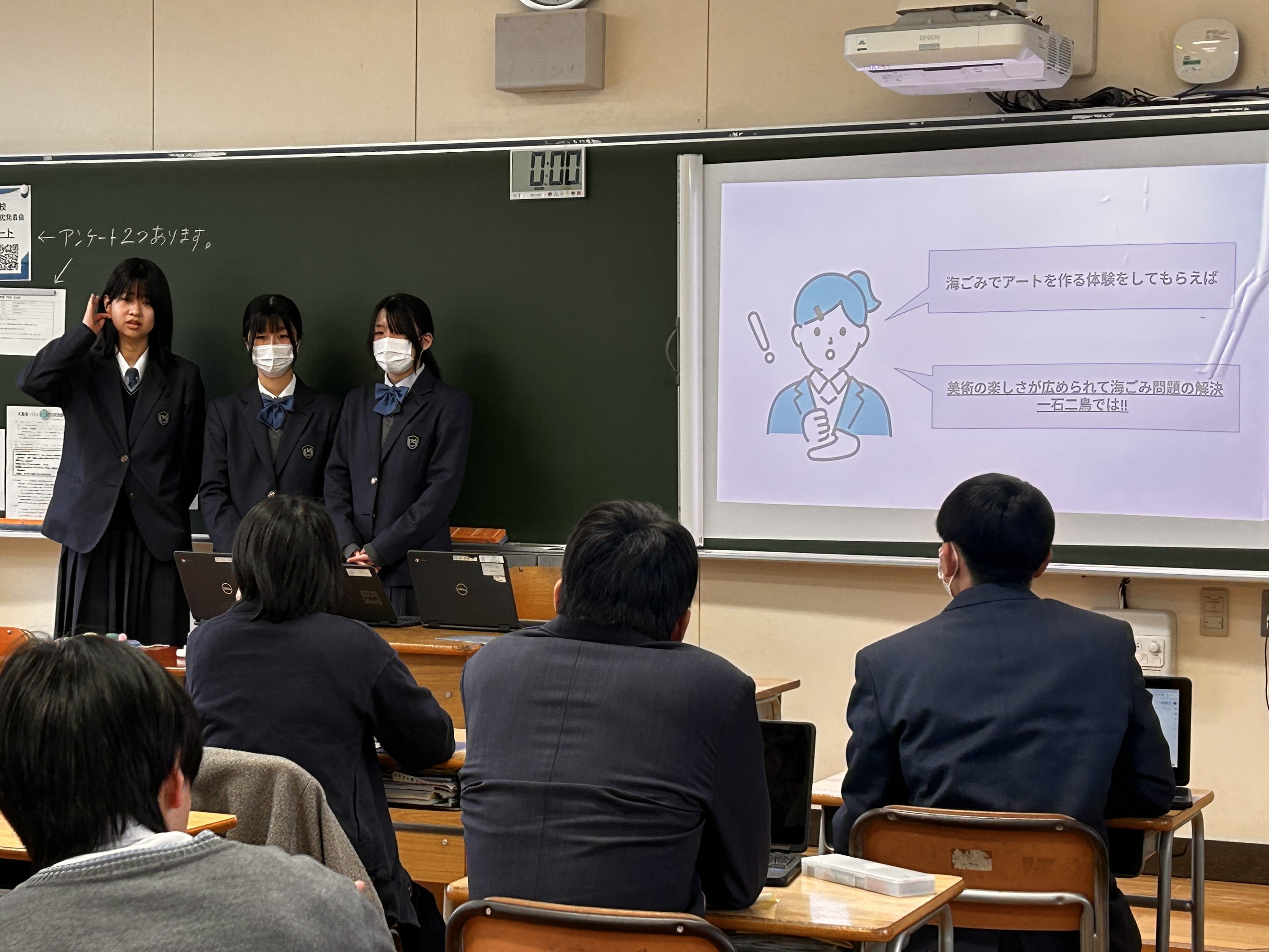 若狭町SDGsアンバサダー平原依文氏と美方高校の連携企画。美方高校オープンスクールの中で探究活動の成果を発表