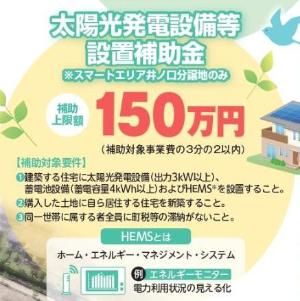 ・スマートエリア井ノ口に建築する住宅は太陽光発電器および蓄電池機器の設置が必要です。